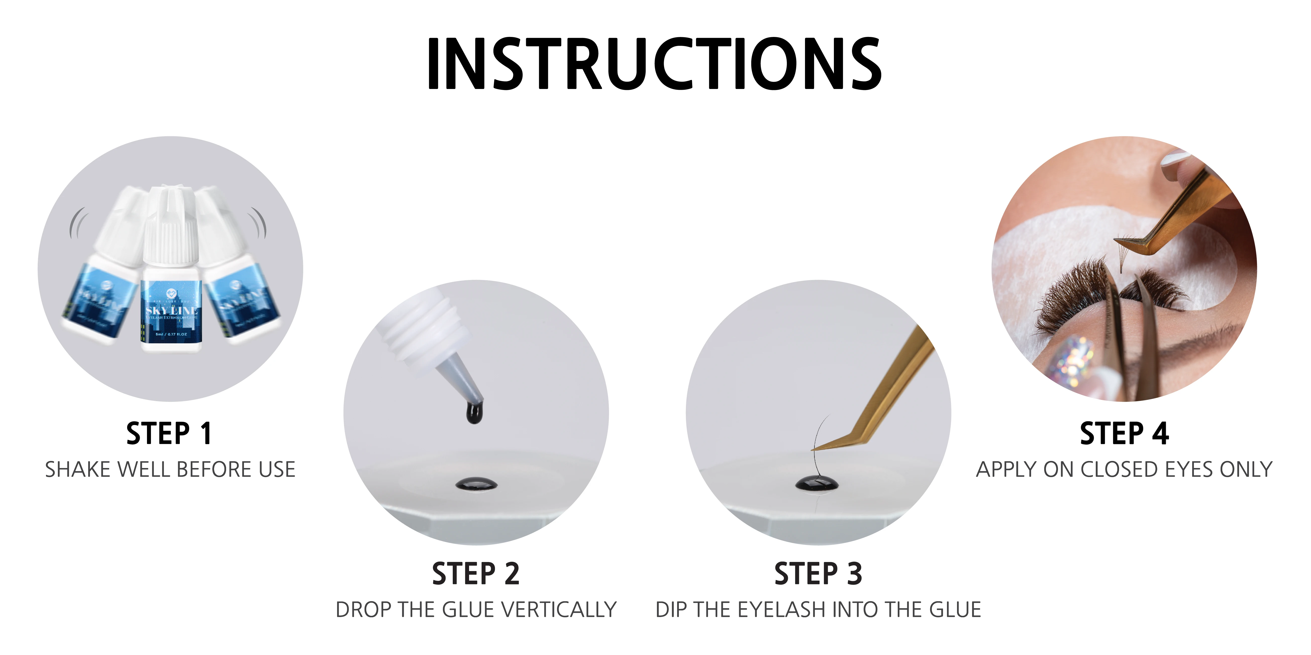 * Applying the extension on lashes where protein, oily Pre-treatment, remover is remained.