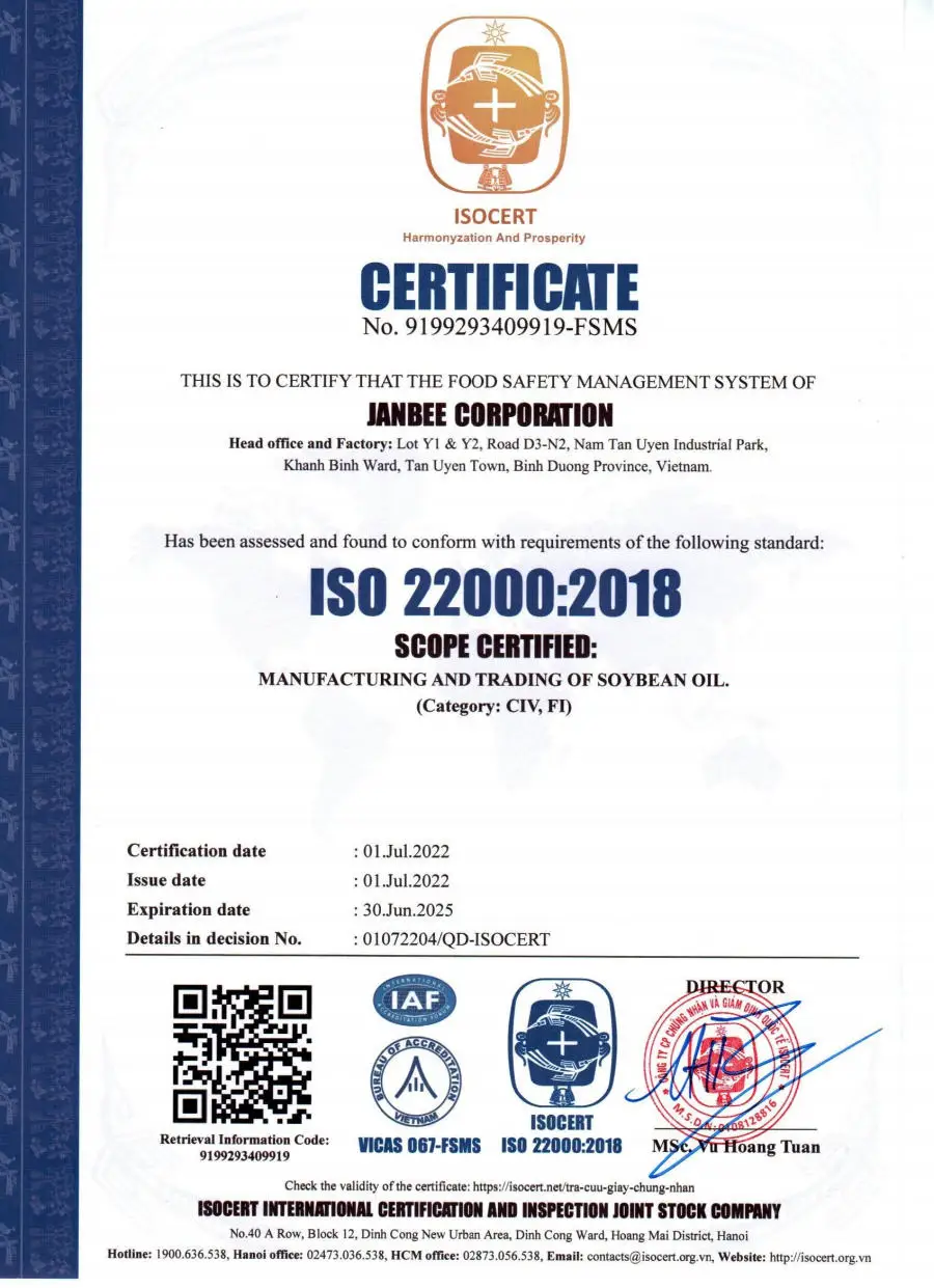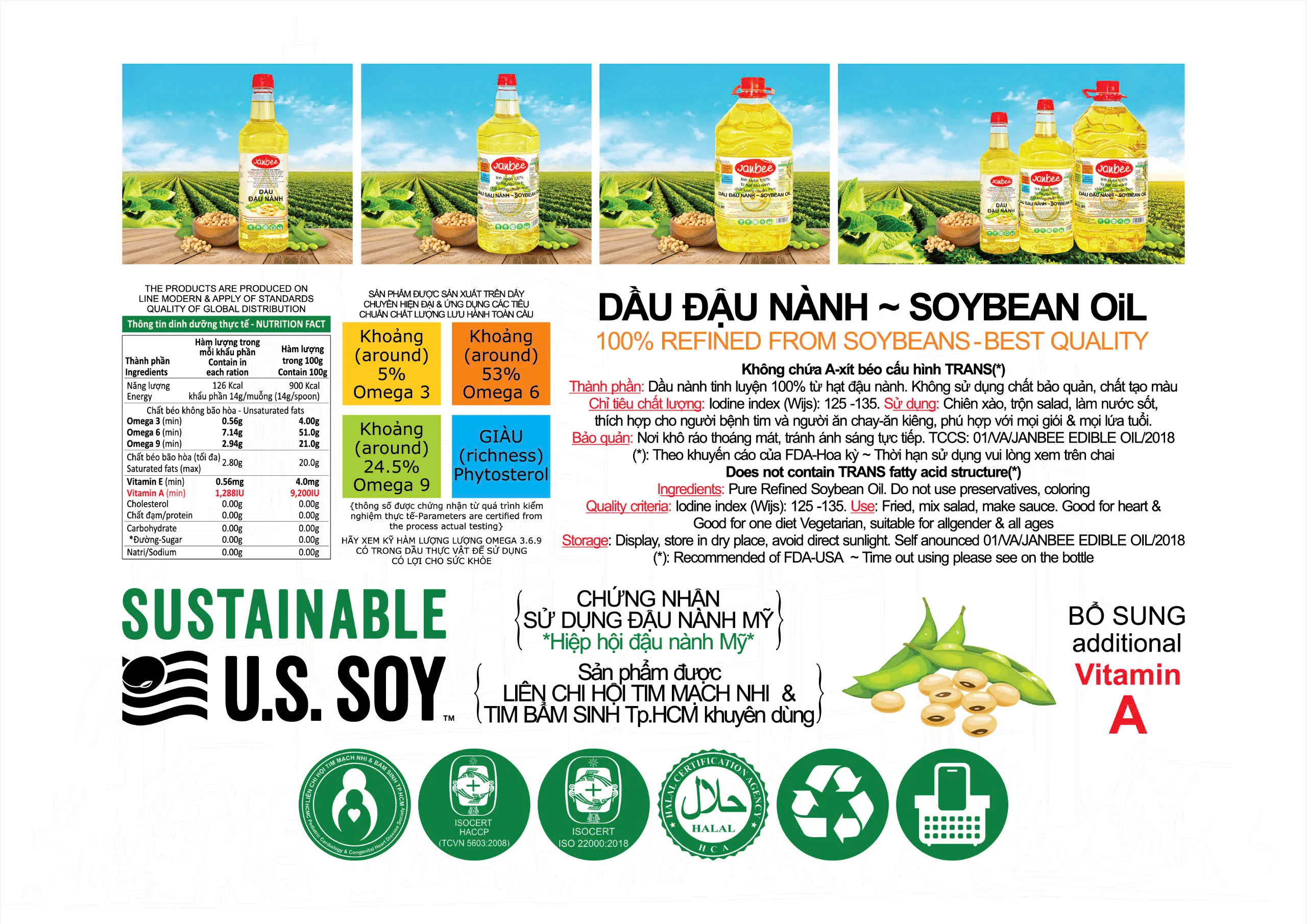 Ingredients | Pure Refined Soybean Oil, Vitamin A palmitate. Do not use preservatives, coloring. |