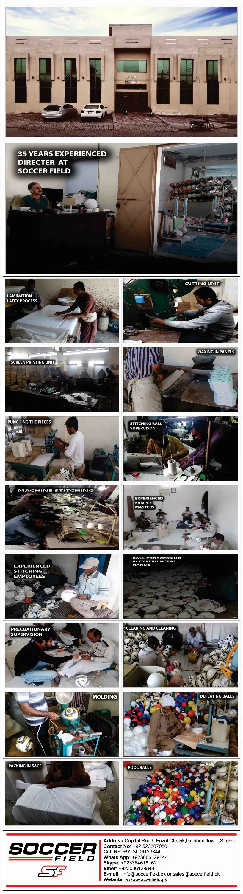 Soccer Field is one of the world's leading sports companies, manufacturing, designing, developing and supplying high performance footballs. It is located in well renowned exporting city Sialkot Pakistan.