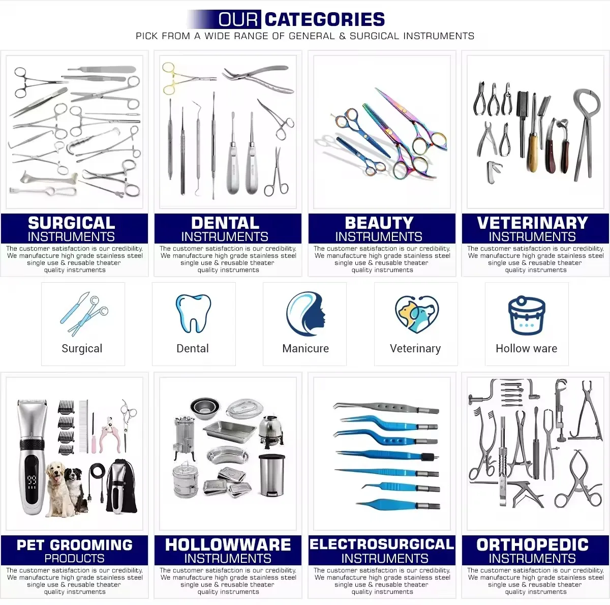 OUR SERVICES: | Manufacturing Dental instruments, Surgical Instruments, Beauty Instruments, Surgical Instruments Sets, Orthopedic Instruments, Ophthalmic Instruments .We are providing customize Services . |