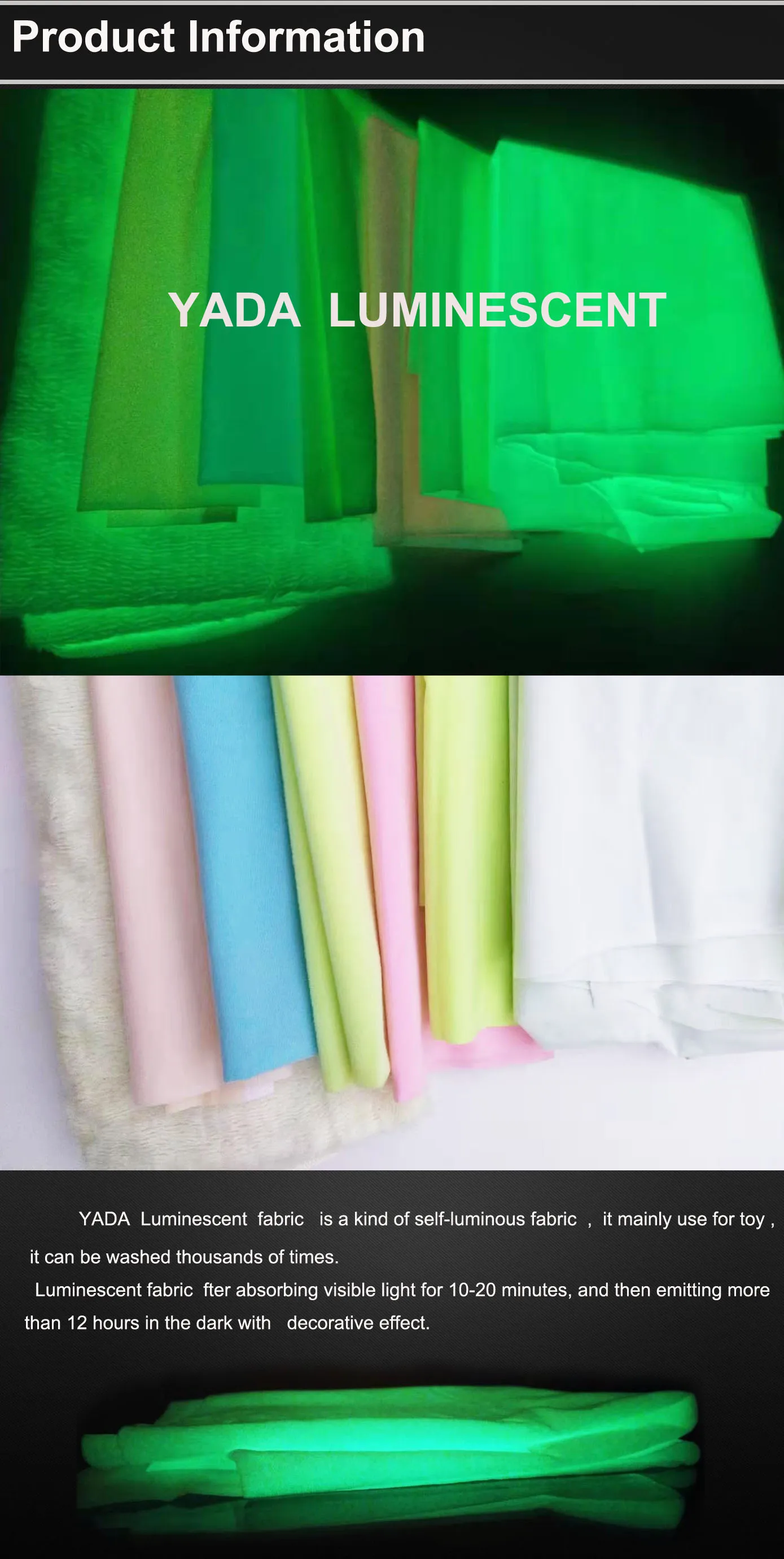 night glow in the dark fabric for plush toy,luminous fabric