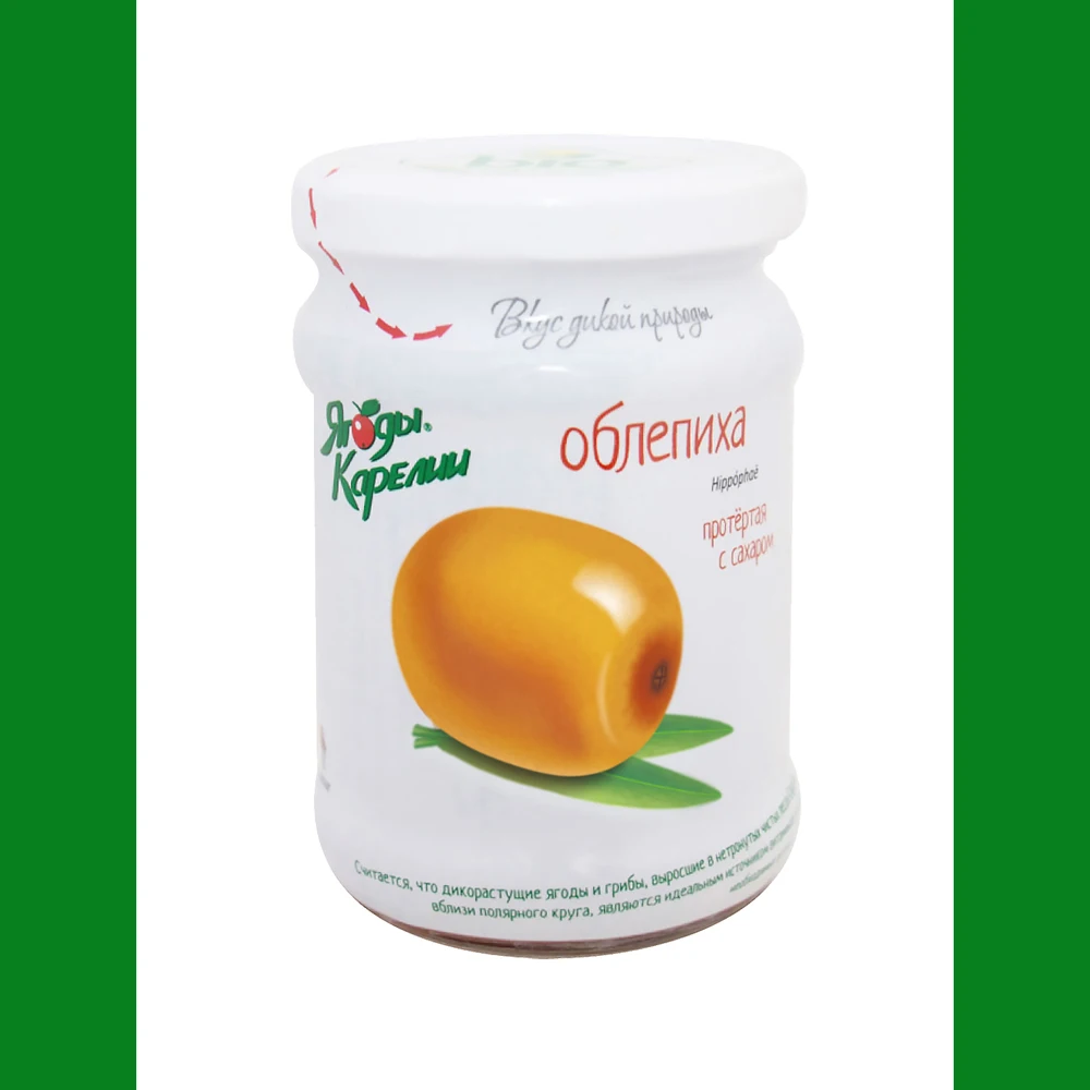 Made only from fresh or preserved fresh berries, by mechanical extraction of berry puree from them, rubbing through a sieve with openings no more than 1.2 mm, followed by mixing it with sugar and packed in colorless glass jars.