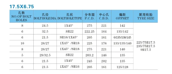 17.5*6.75truck wheel rims specifications
