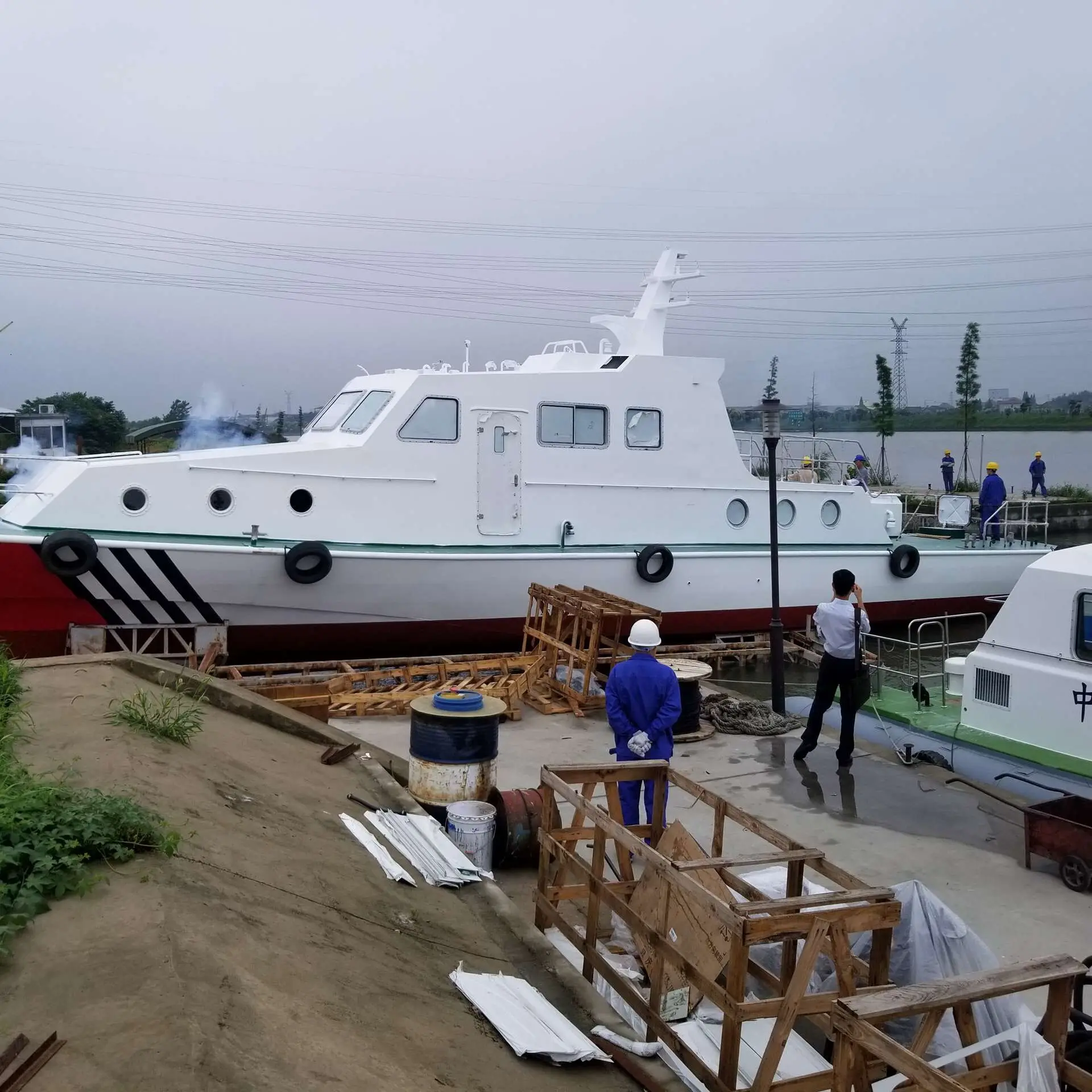 1) CCS , CE OR NSCV standard for qualified welding schedule , aluminum plate , aluminum profile and inspection . 2) Bilge manifold system, self drain deck , side working door ,safety flotation and bilge pump to face extreme weather. 3) Big fuel tank for long time manoeuver on the sea or river
