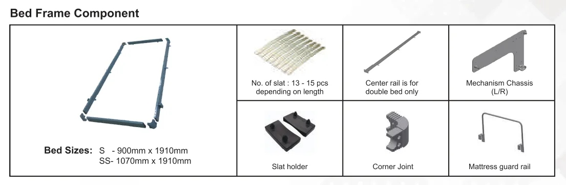 Accessories Part | Wood Slats with Holders, Mattress Rail, Plastic Corner Joint, Mattress Strap, Safety Lock Bracket, Slow Moving Damper, Gas Spring |