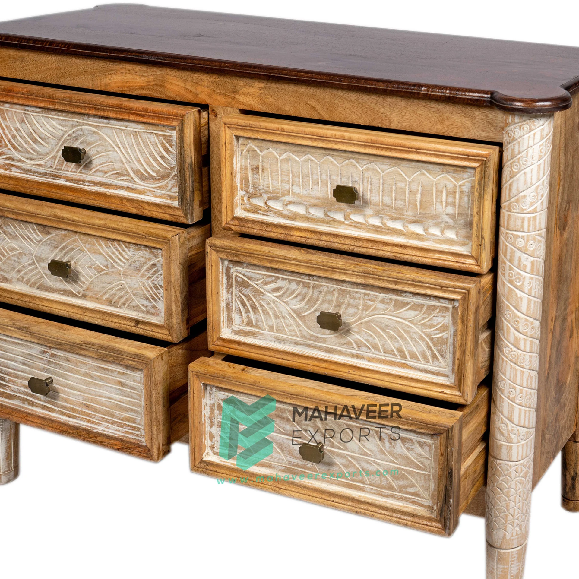 Product | Best Quality Wooden Hand Carved Six Drawer Chest In Distress Finish For Living Room Carved Design Furniture |