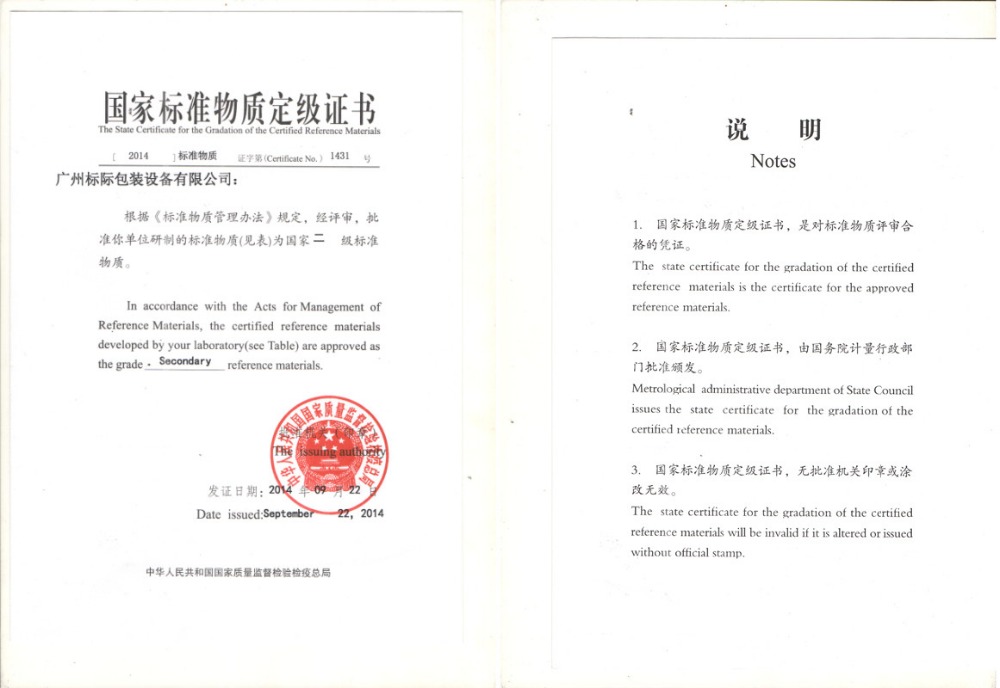 Gradation of the Certified Reference Materials