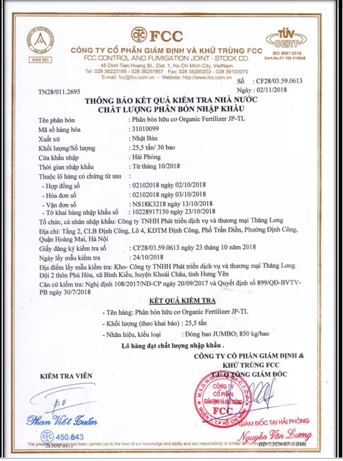Industrial crops: coffee, pepper, rubber etc. | Soil conditioning before planting: 1000kg/ha · During growing period: 500kg/ha (or 0.5kg/tree/year) |
