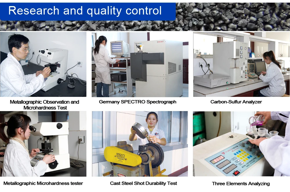 A: We have three automatic production lines for steel shot and steel grit production, one work shop for steel cut wire shots, and one workshop for stainless steel shot and Aluminium shot and so on.