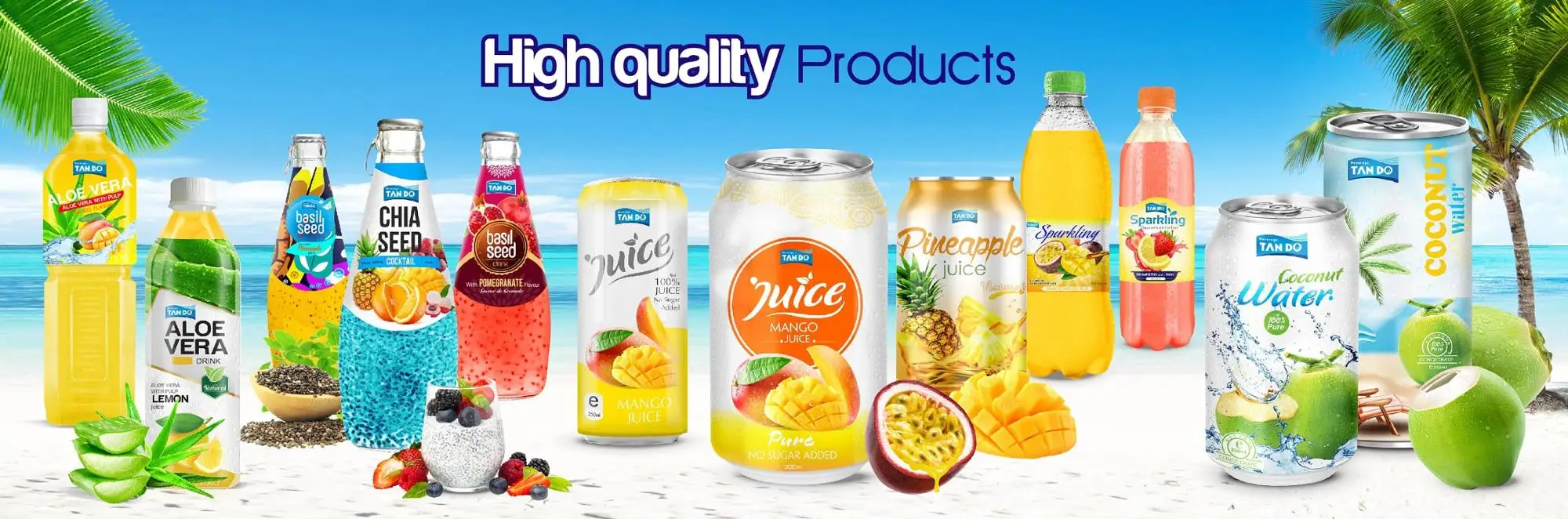 Ingredients | Basil/Chia seed, Fruit Juice, Water, Cane Sugar Tropical fruits: mango, pineapple, grape, pomegranate, guava, orange, strawberry, soursop, passion fruit, etc. |