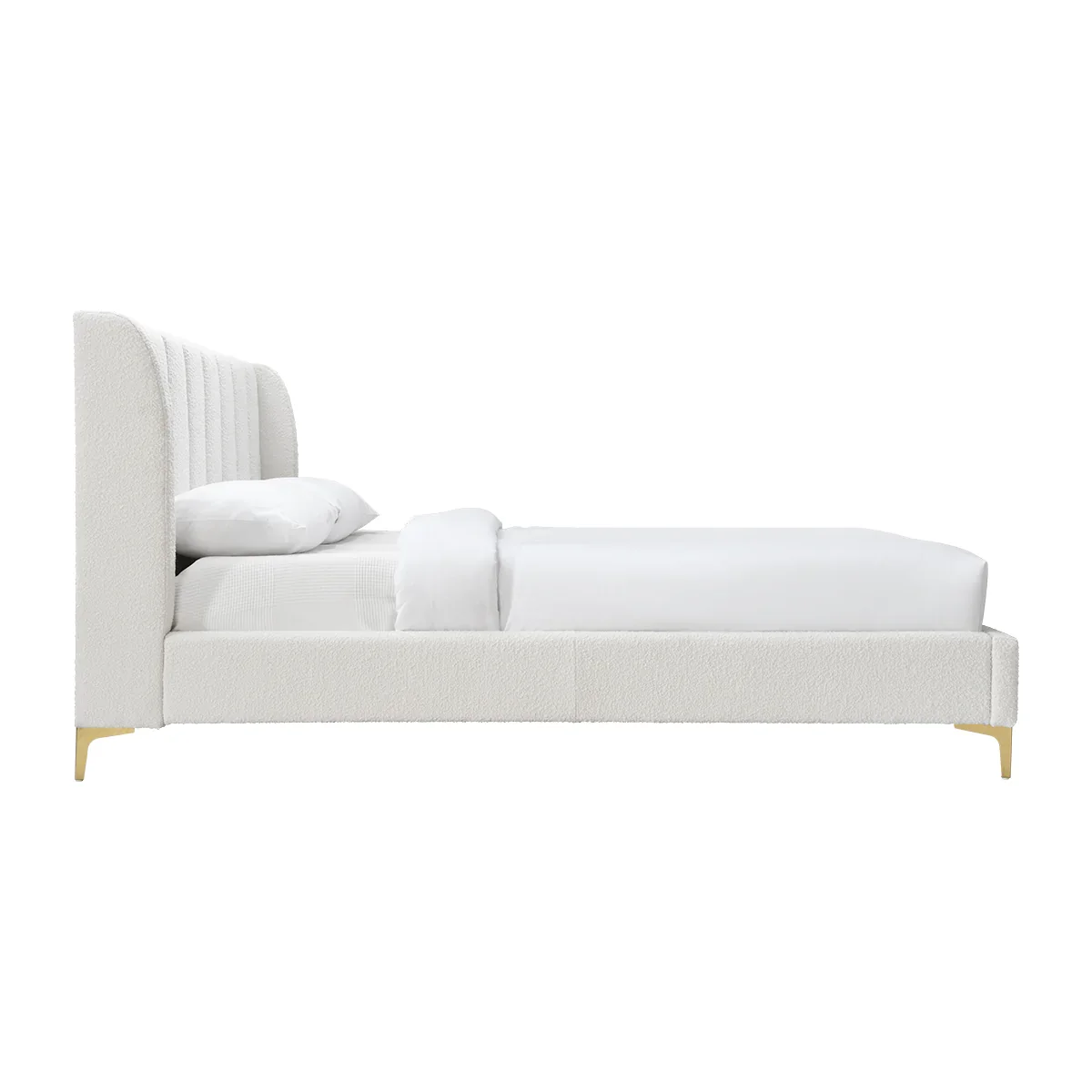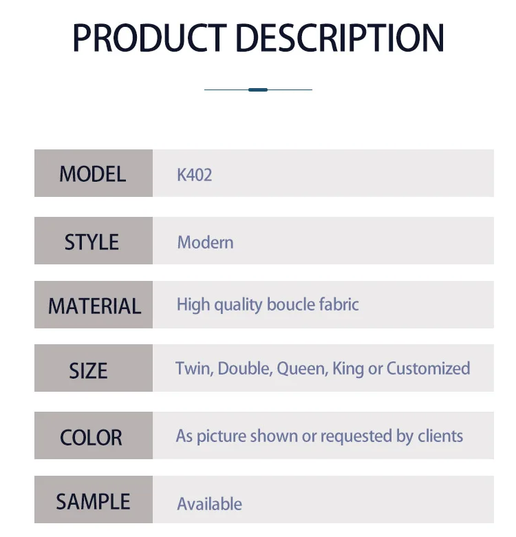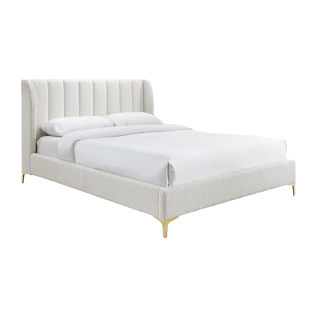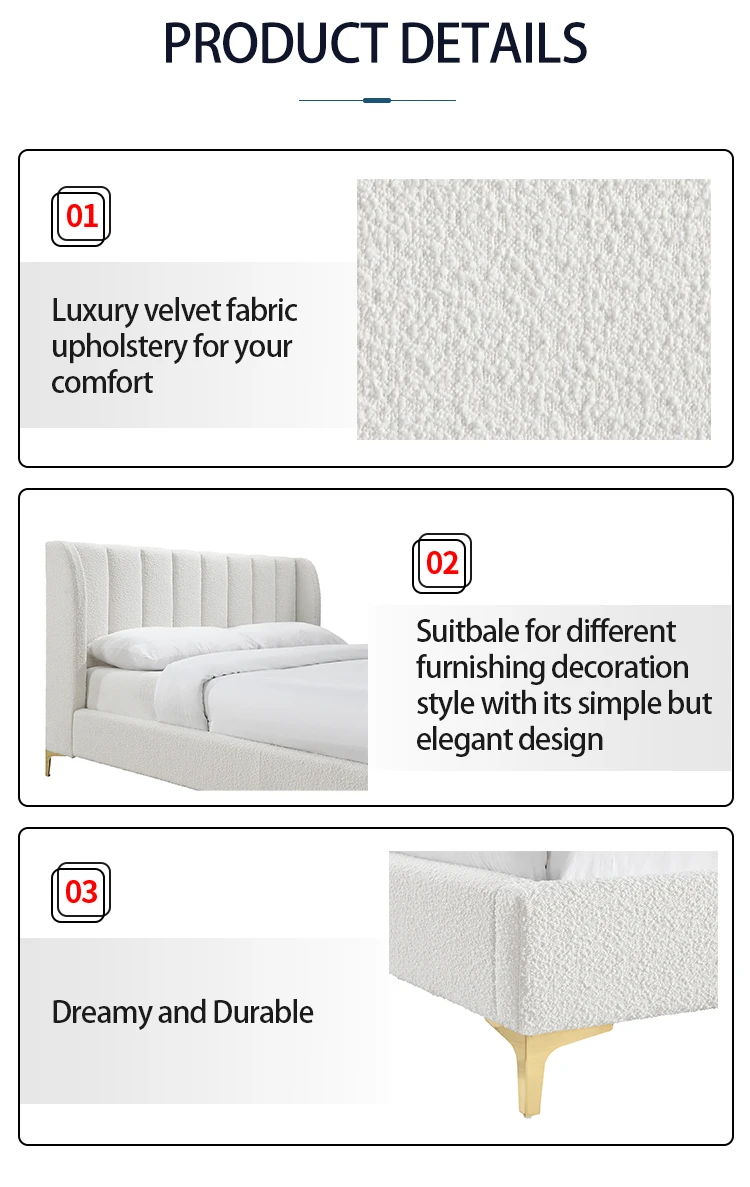 Beautifully Upholstered in White Boucle Fabric Latest Modern Design Queen Tufted Bed Frame Bedroom Furniture