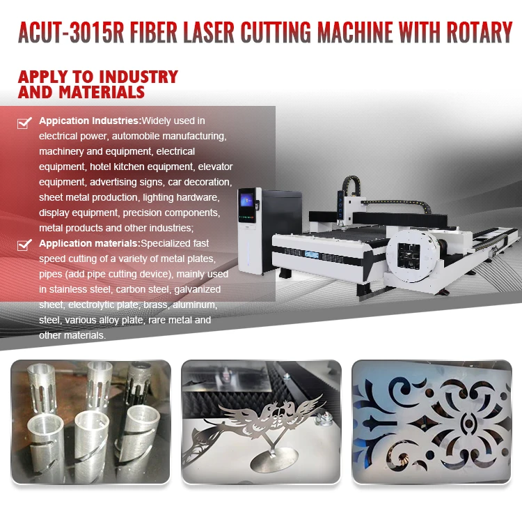 Model NO. | ACUT-3015R Metal Sheet Fiber laser cutting machine WITH Rotary | |