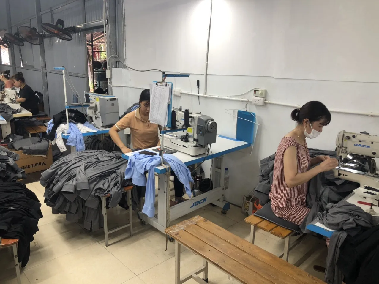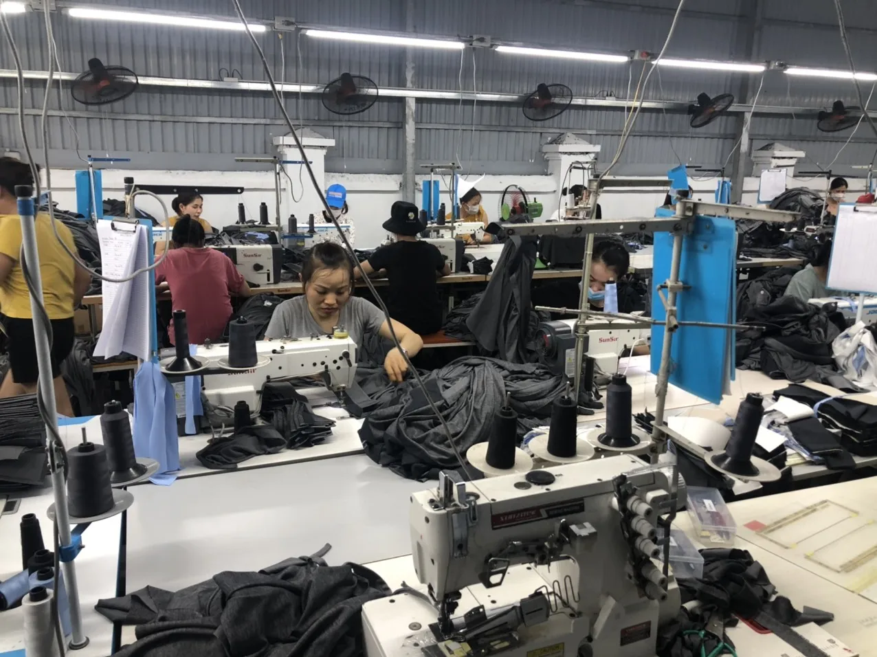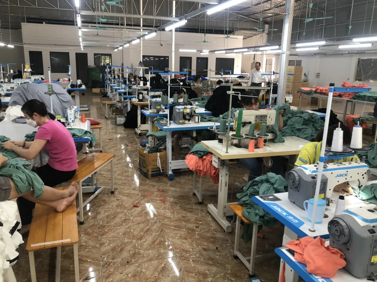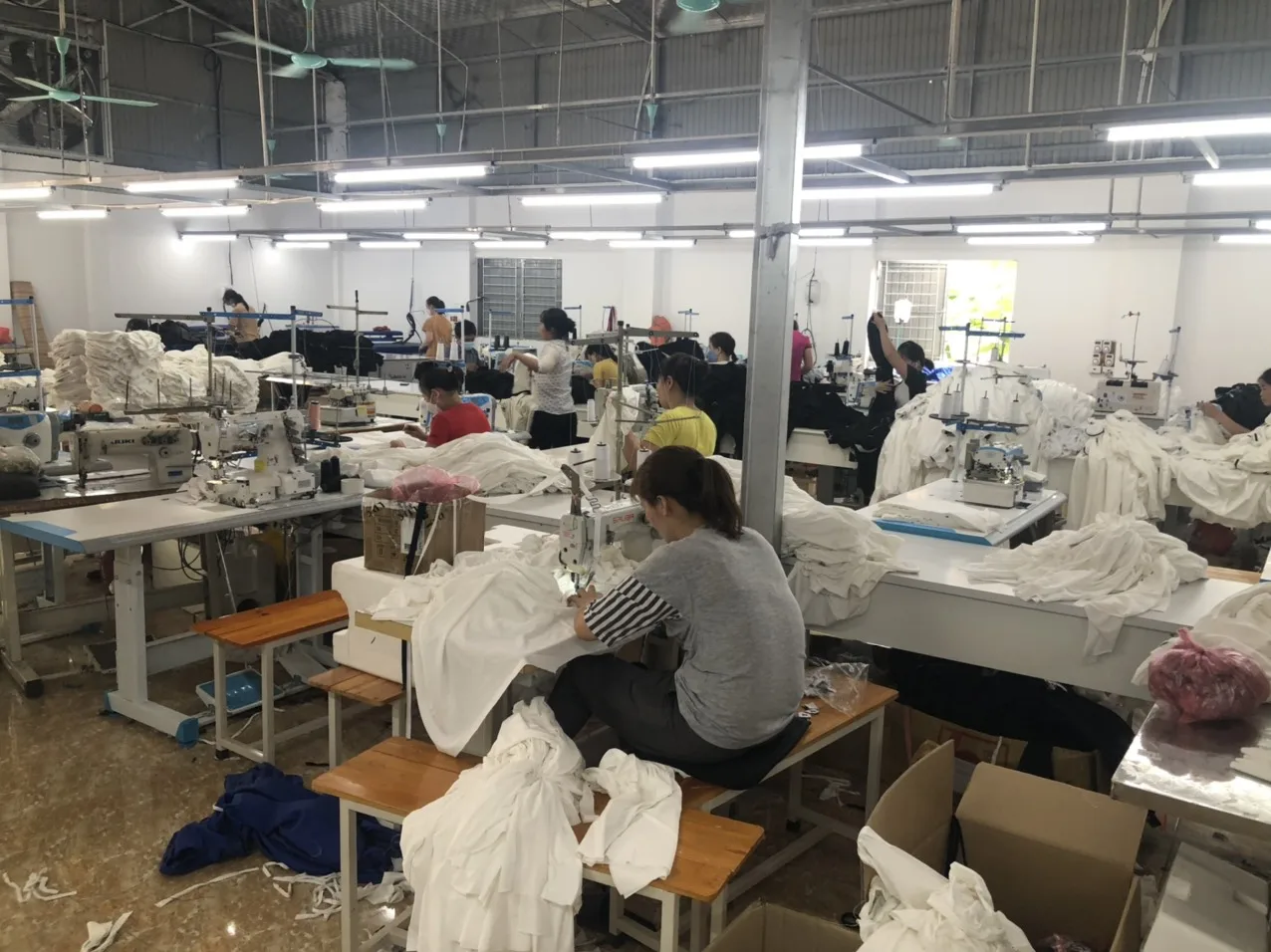 Total 2 sewing lines currently with 30 sewing operators each per line with 50 employees.