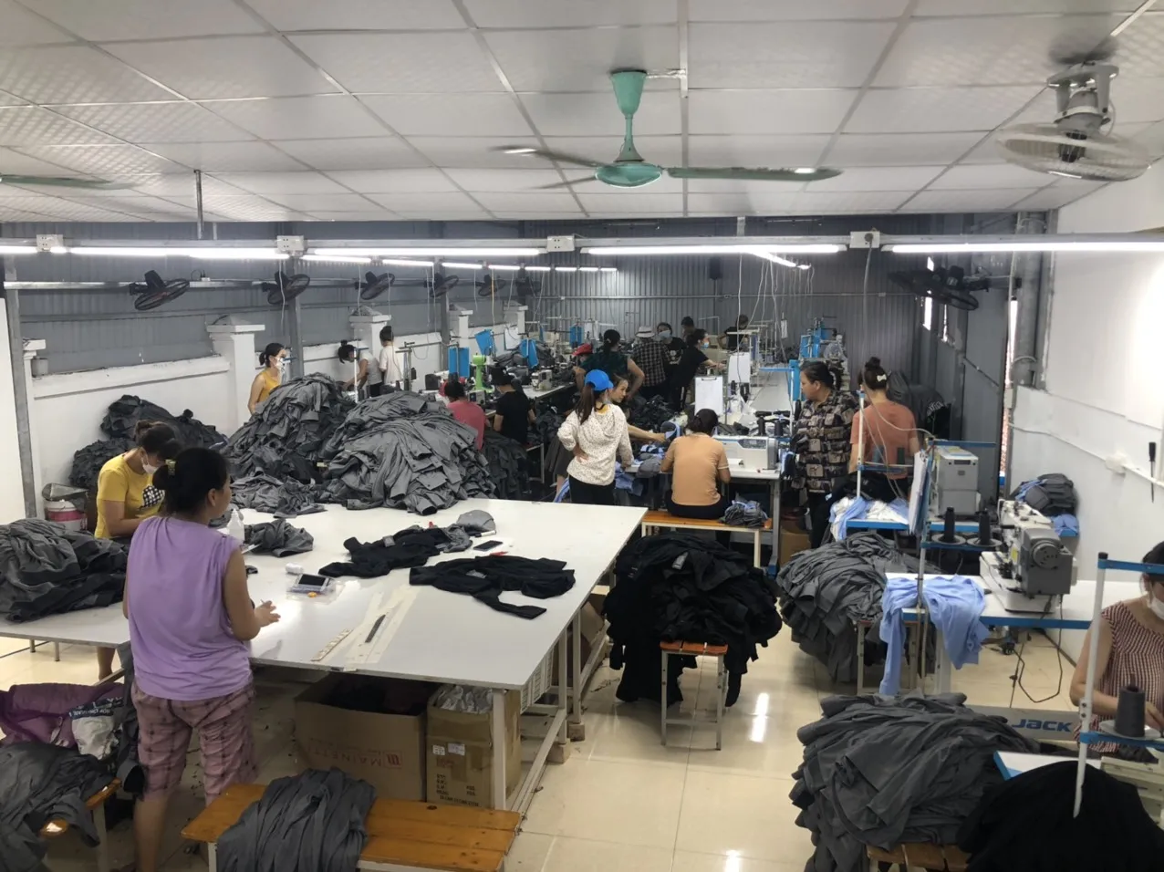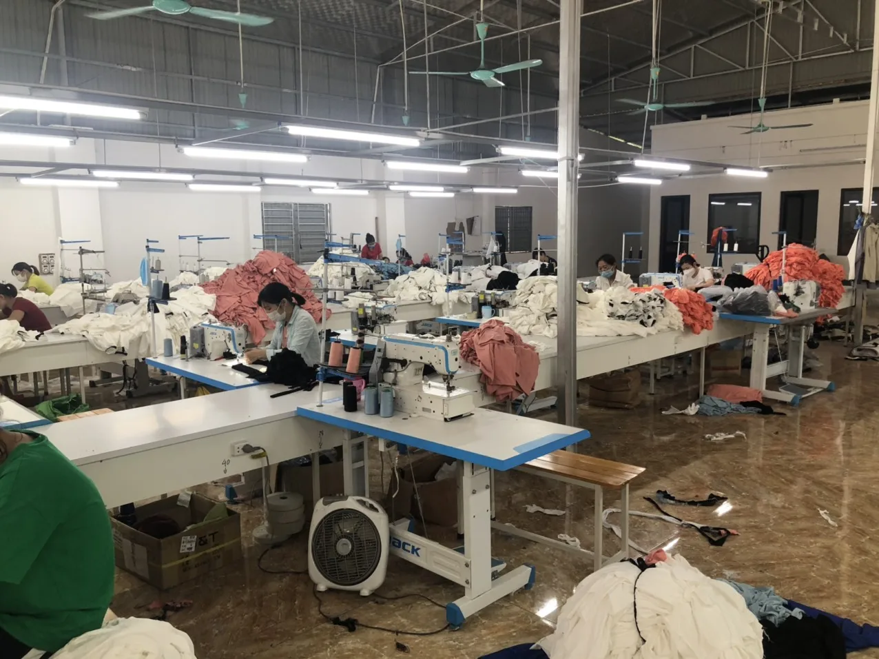 Total 2 sewing lines currently with 20 sewing operators each per line with 45 employees.
