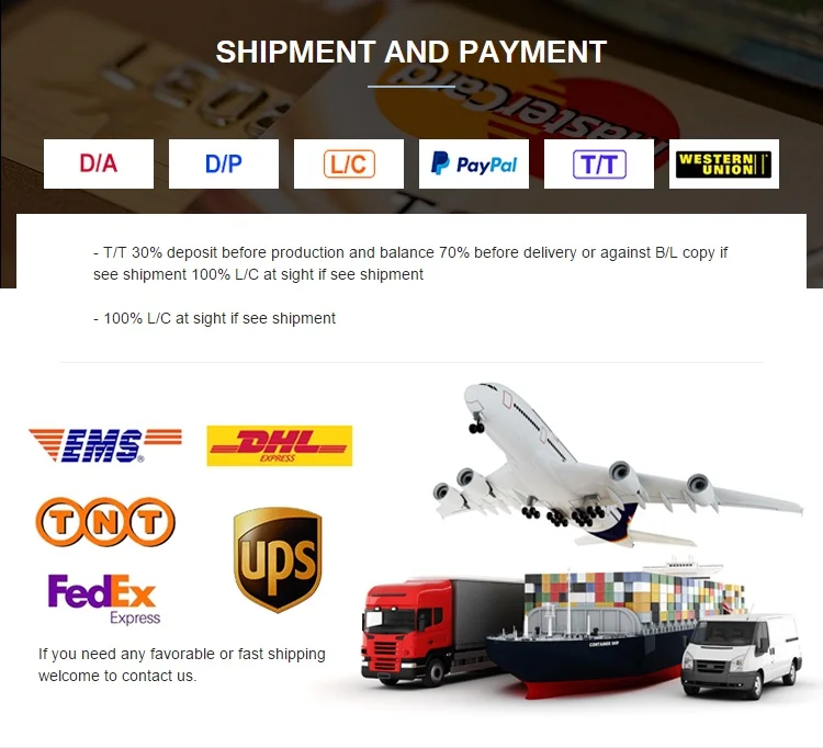 1)       Paypal, Western Union, T/T for samples