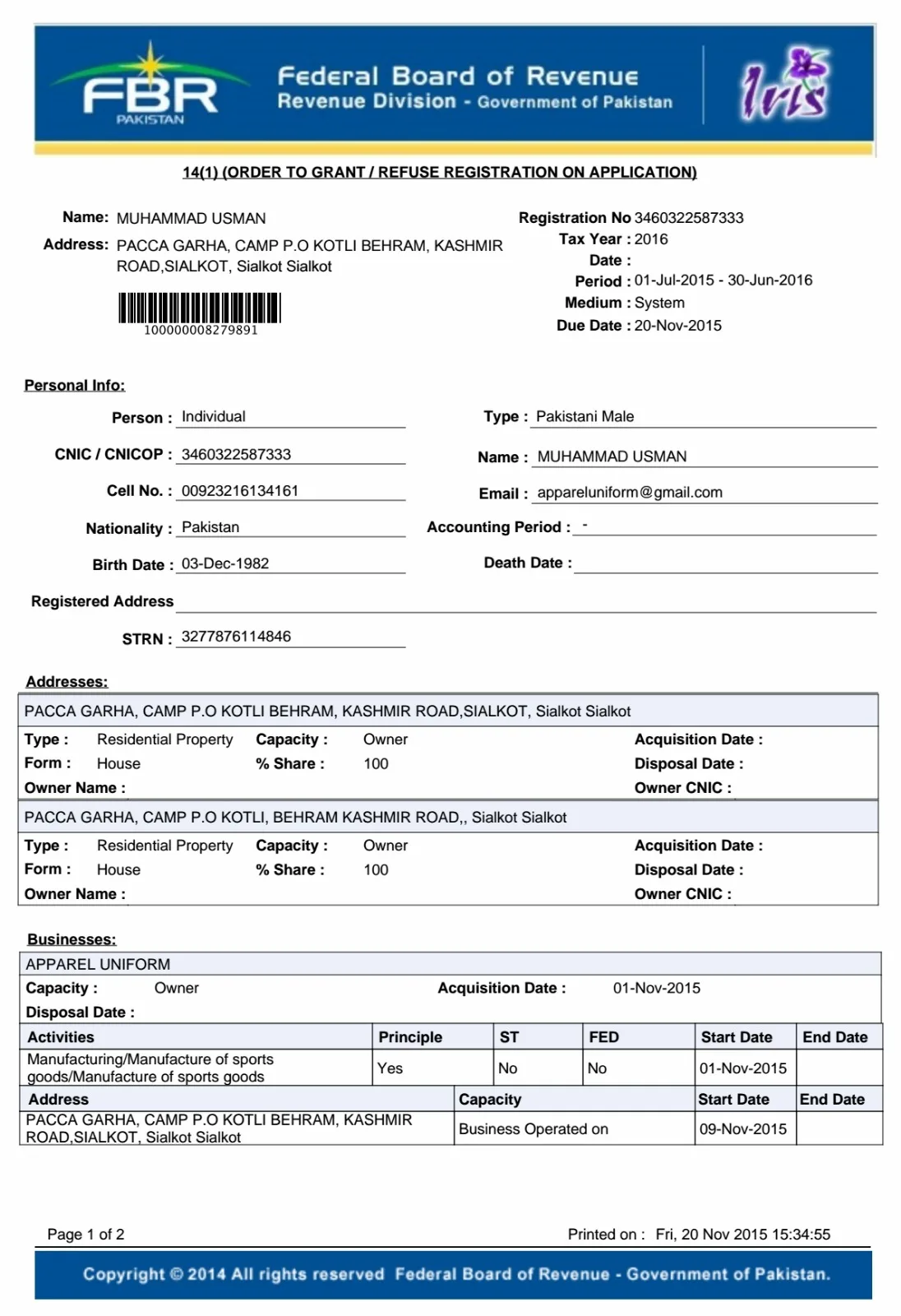 Place of Origin | Pakistan |