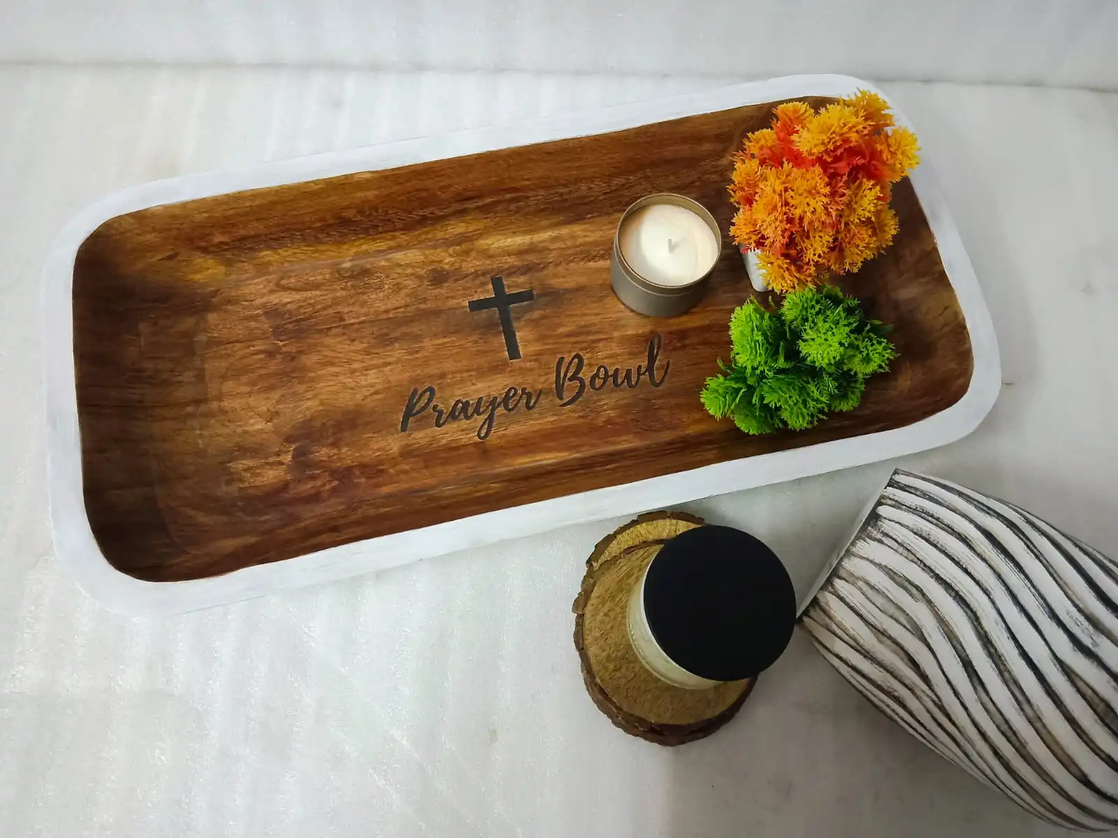 Product Name | Large Vintage Brown Wooden Prayer Dough Bowl Rustic Religious Christian Cross Engraved Home Decor Art Christmas Church Candle |