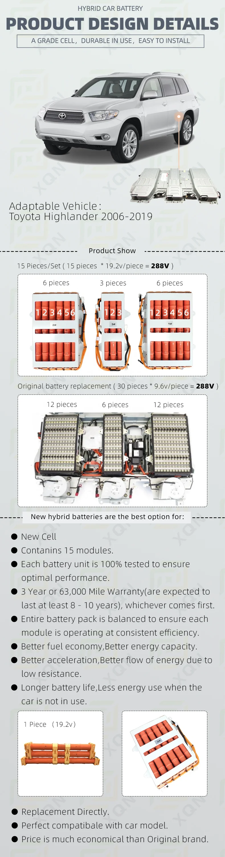 Hybrid Car Battery for Toyota Highlander 2006-2019