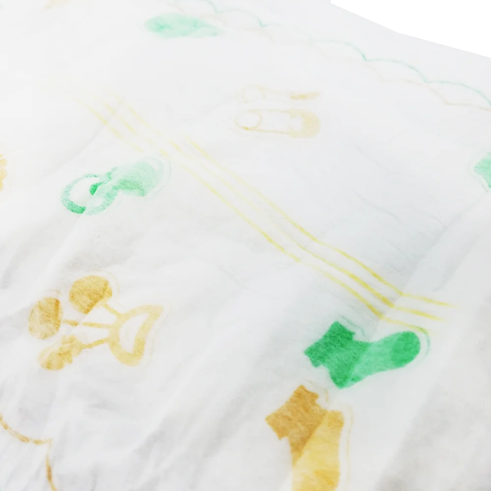 4. Topsheet: nonwoven breathable topsheet, soft and hydrophilic, quickly move urine to core and keep baby buns dry and comfortable.