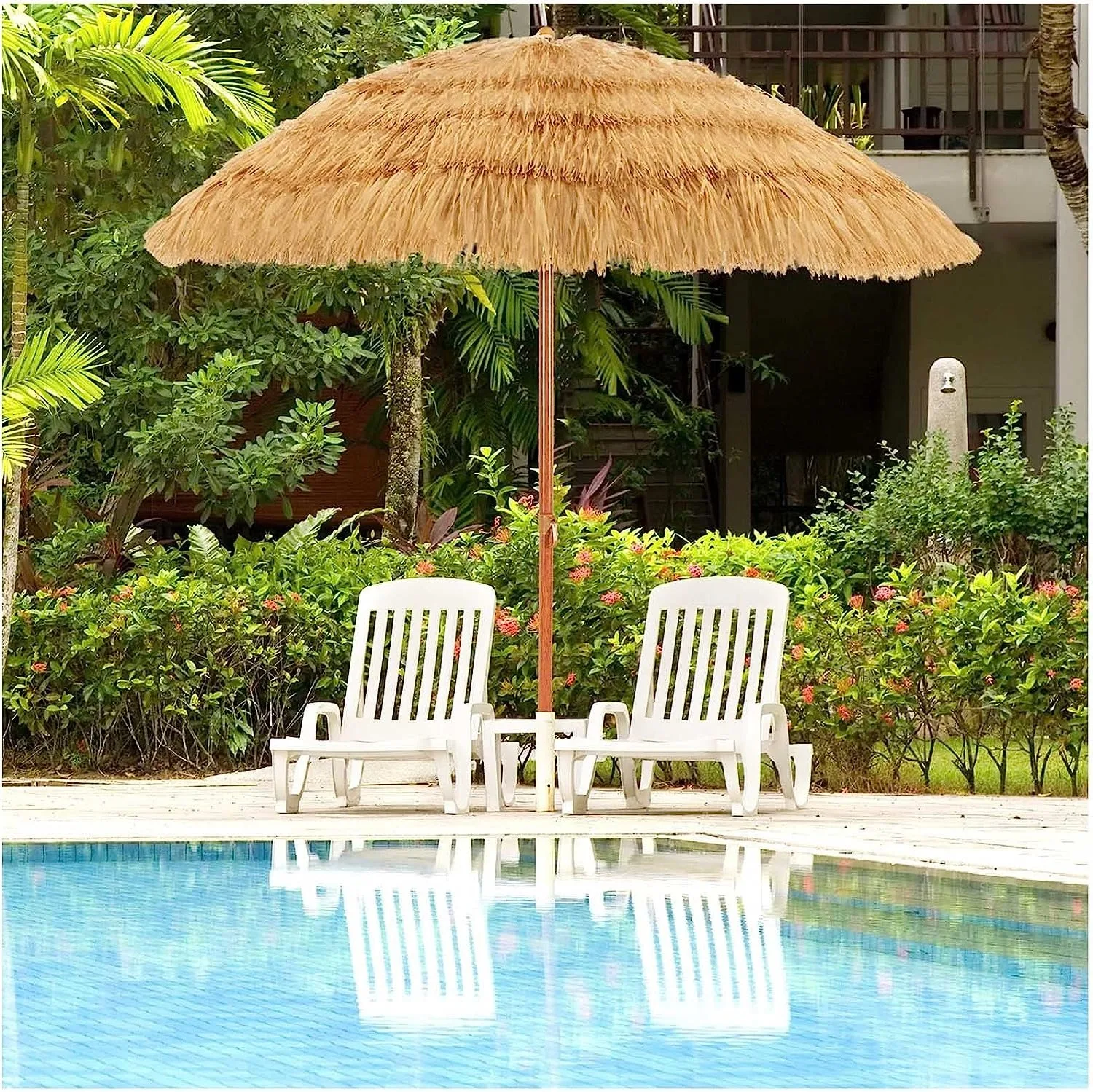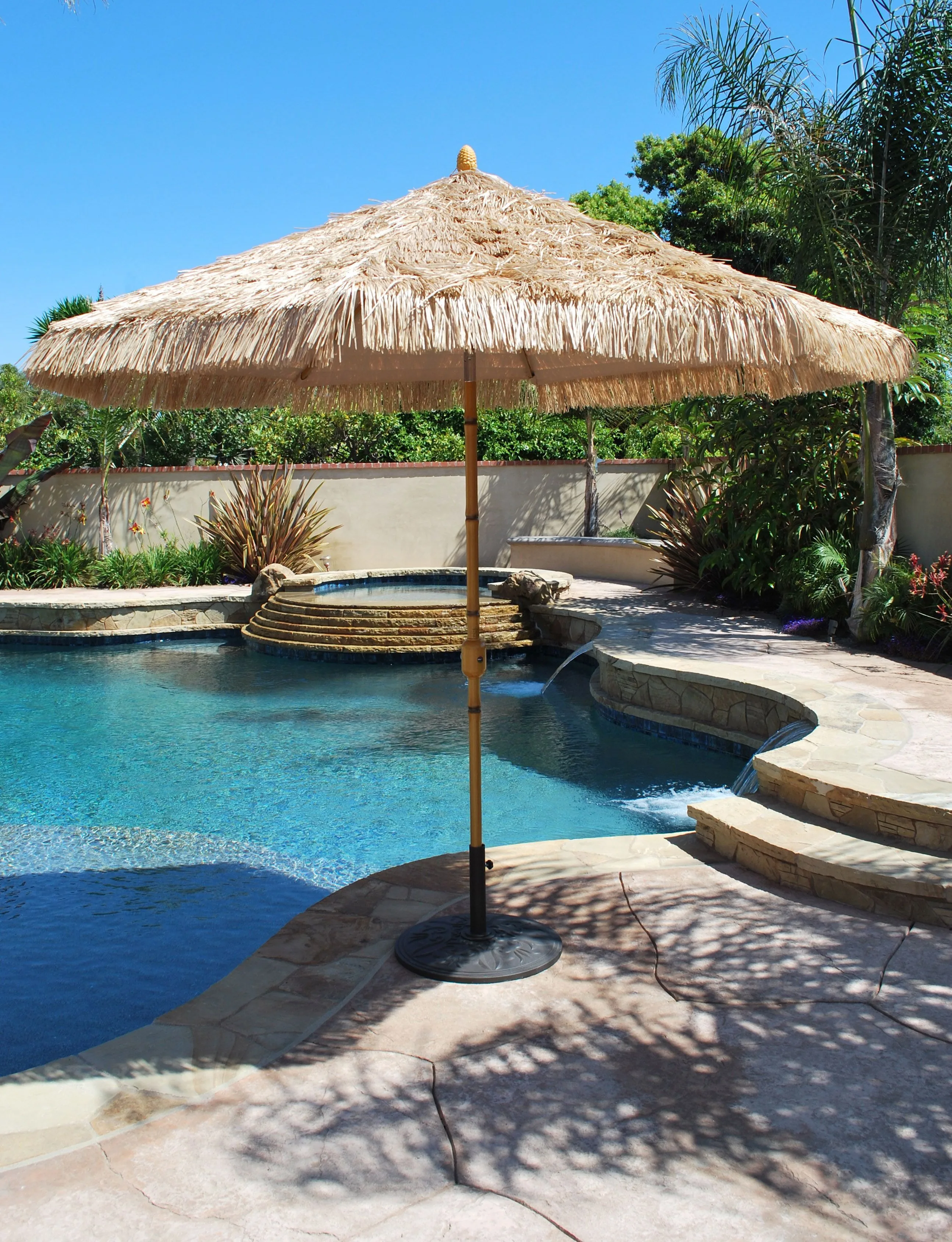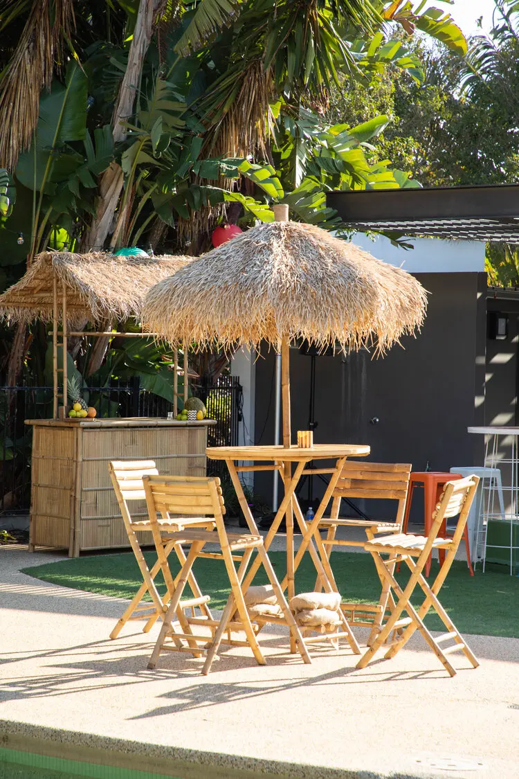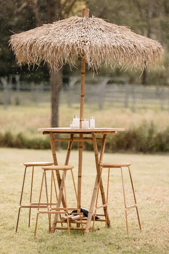 This high-quality bamboo umbrella with a straw leaf roof will shield you from sunlight in the garden, or on the terrace or patio. It can also be used for exhibitions, bars or restaurants.The umbrella can be folded for easy transport and storage.