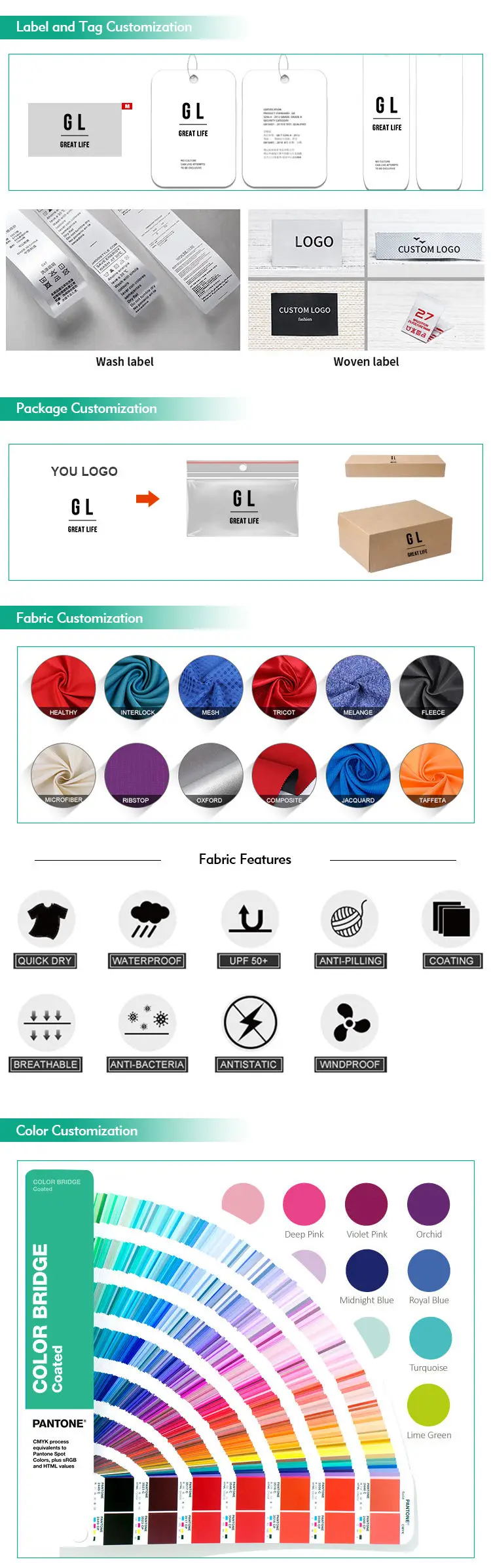 Logo/Tag/Packaging: Full body Sublimation printing /3D Rubber print /Embroidery/Silk screen