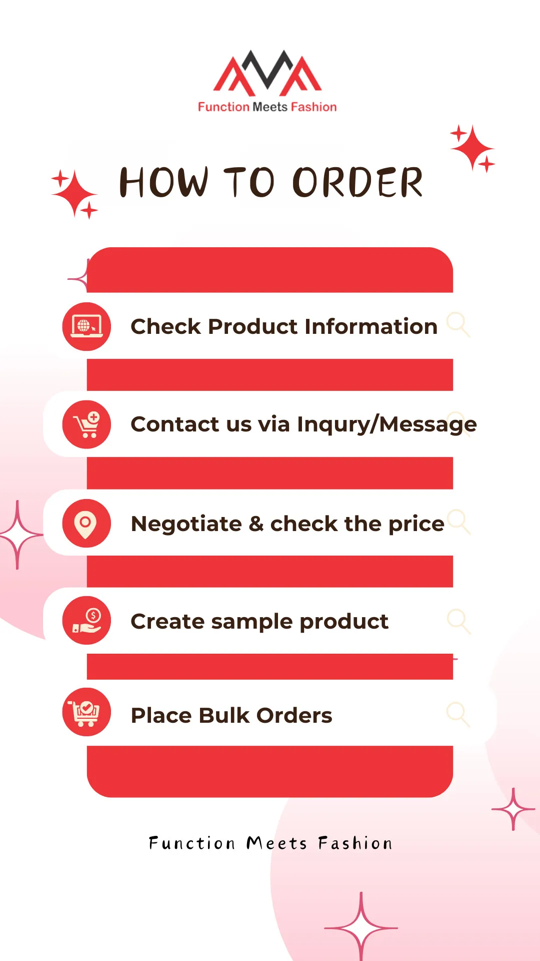 After approval the design, material and printing method. You pay the sample cost, then, we will make the sample for you, give the photos of the sample first once we finished it, if you feel good, we will send the sample to you, you can check all the details. Then, we can arrange the mass production after the sample approved.