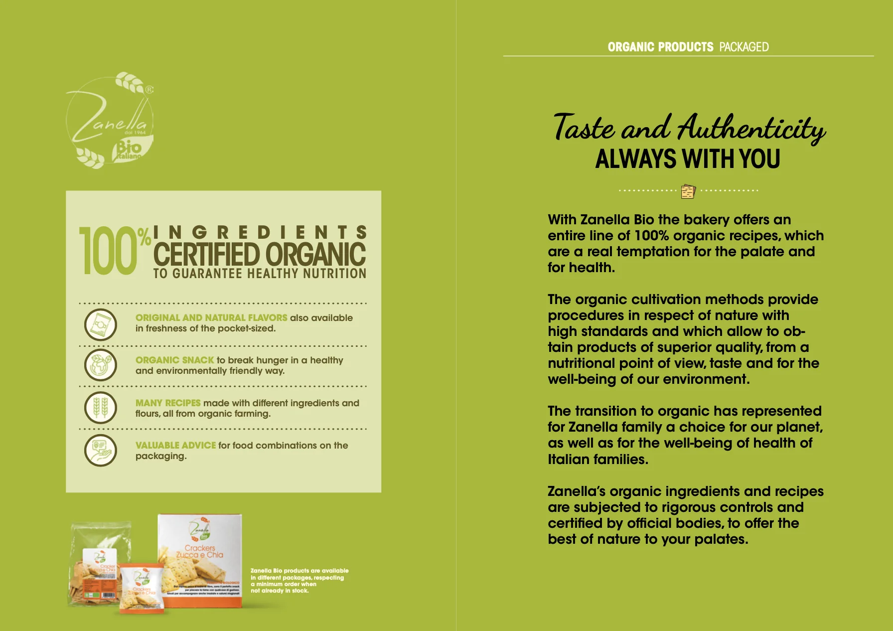 Following the above mentioned choice, in 2010 Panificio Zanella started the production of organic products, too with specific attention to taste and deliciousness. This choice led to be Private Label producer for a very important italian brand as far as organic is concerned.