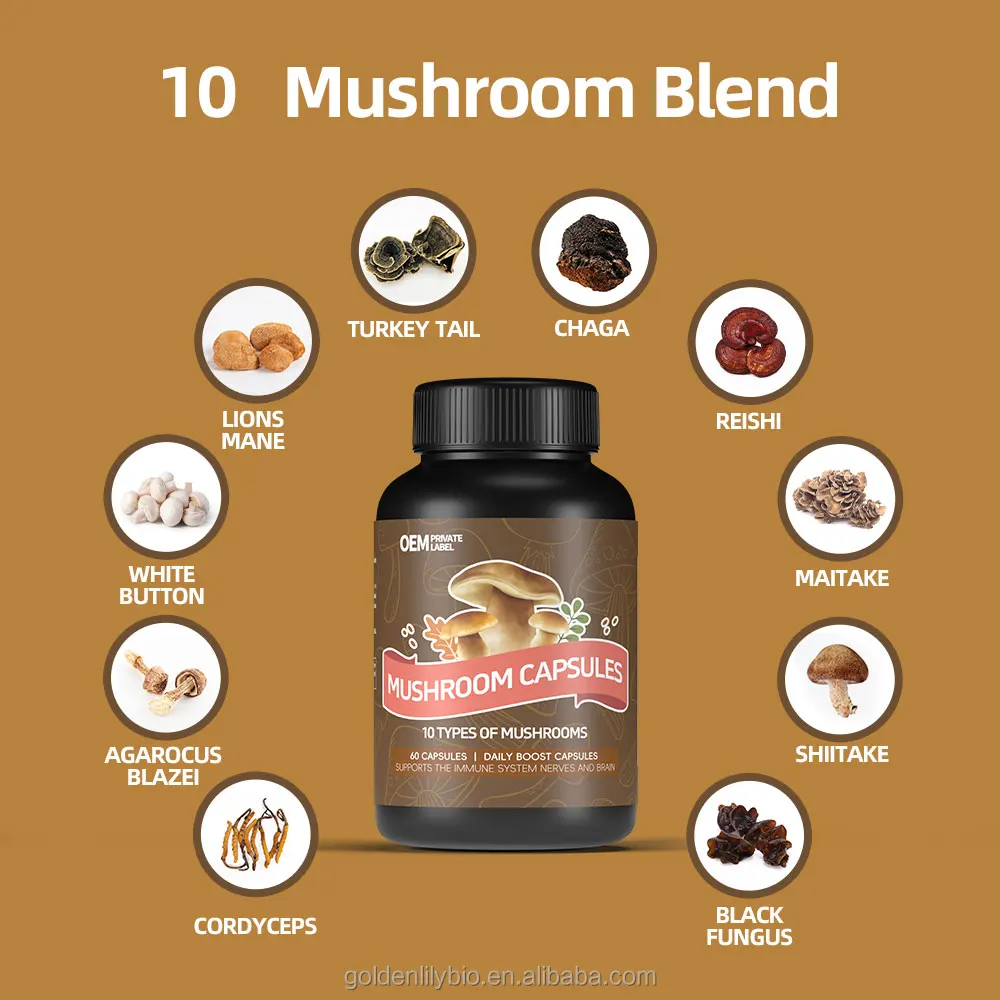 10 in one Mushroom complex blend extract powder vegetarian capsules
