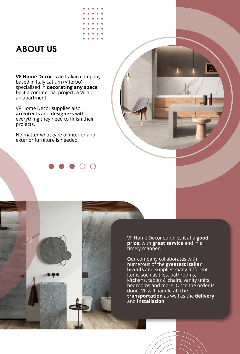 VF Home decor has been on the market since 2019 and has contributed to the creation of numerous private and corporate projects in Europe, America and Africa having excellent review rates on Facebook. https://m.facebook.com/VFHomeDecorSRLS