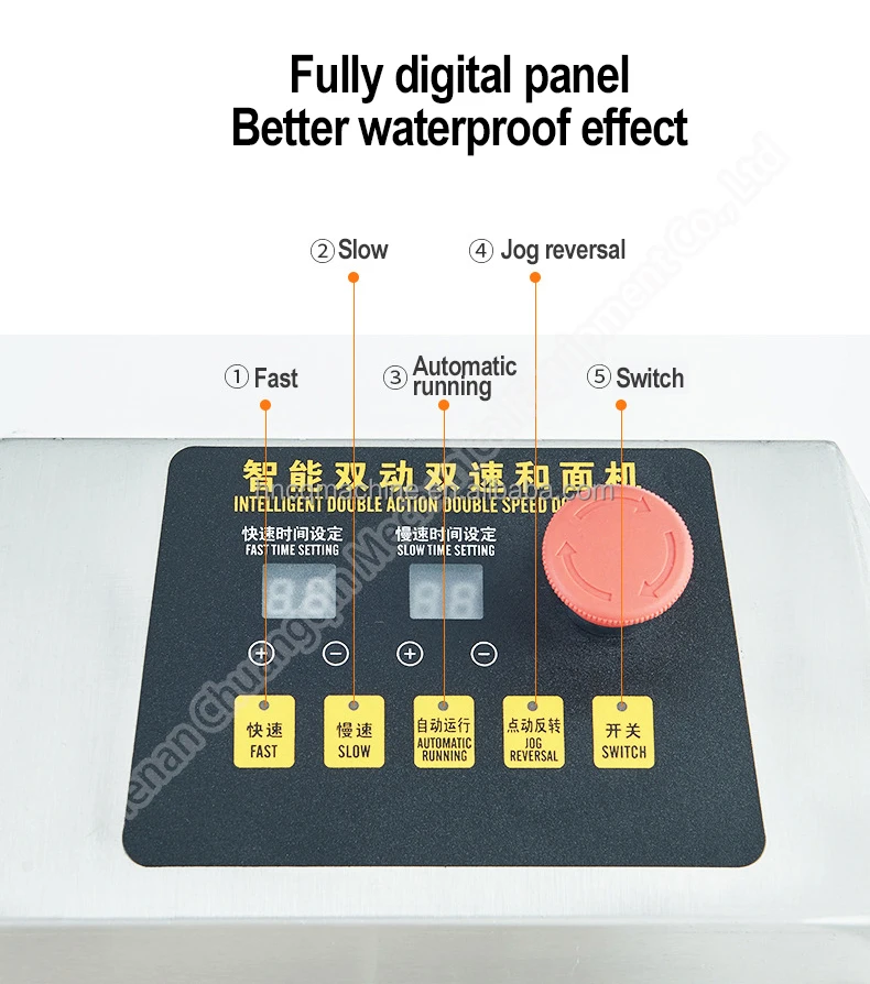 2.Equipped with time-controlled operating procedures,can control the low-speed,high speed dough time, then stop timely automatically.