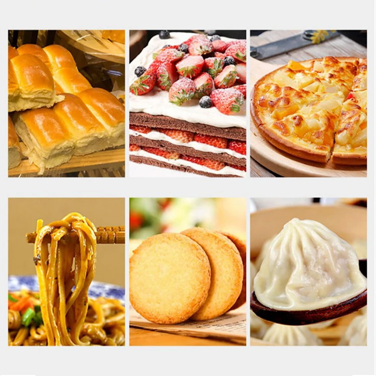 6.Mixing dough capacity range from 25kgs-120kgs.Suitable for making bread ,pizza and dumplings .