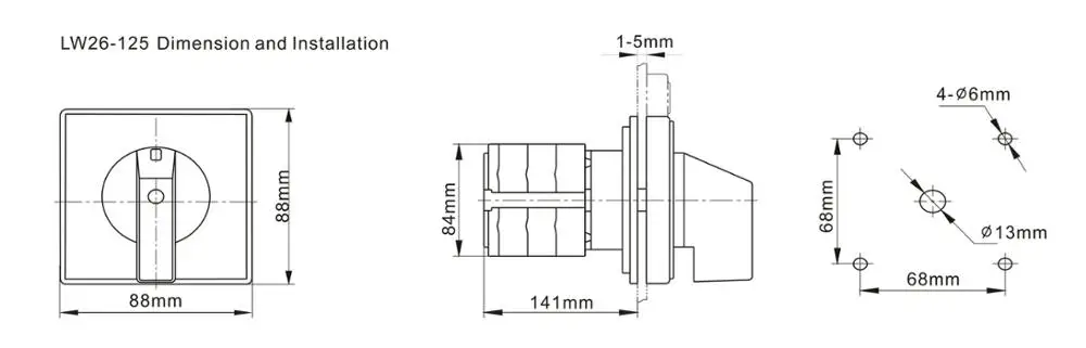 The sereies LW26 поворотный переключатель в основном относится к 440 В и ниже, AC 50 Гц или 240 В и ниже ПОСТОЯННОГО ТОКА.