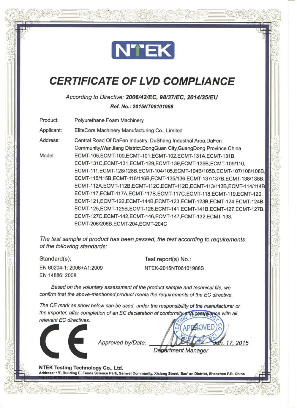 вопрос: Имеет Ли ваша машина CE сертификации?