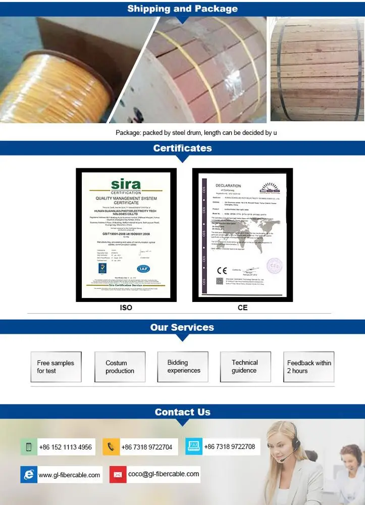 хунань Guanglian Фотоэлектричество Технологии Co, Ltd (GL technology) является профессиональным производителем волоконно-оптического кабеля. GL technology предлагает своим клиентам полный спектр крытый и открытый кабели, в том числе FTTH падение кабели/воздушных волоконно-оптический кабель/протока волоконно-оптический кабель/непосредственно похоронен волоконно-оптического кабеля, ADSS, OPGW и OPPC для энергетической системы передачи в Китае.