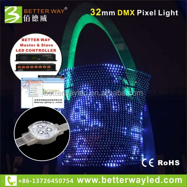 DMX512 светодиодный пиксель света 32 мм LED точки DC12V IP67 65536 серый