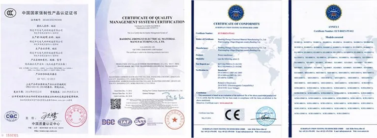 В S11 медь намотки трехфазные масляные трансформатор распределения питания оборудования и сухой трансформаторы прошло испытания национального надзора и инспекции центр для экономии энергии качества продукции; комплекты низкого напряжения (GGD2) (GCK) имеет прошел испытания Китая принуждения сертификации (ccc) От государства бюро качество и технический надзор для электротехнической продукции; крытый AC Дрей типа металлов, плакированных КРУ KYN28A-12/1250-31.5, исправлена ac металлическом кольцо сети Кабинета XGN15-12/1250-31.5 и XGN15 металлическом корпусе распределительных устройств имеют прошел испытания национального контролю качества и осмотр центра для высокого напряжения электроприборы продукт.