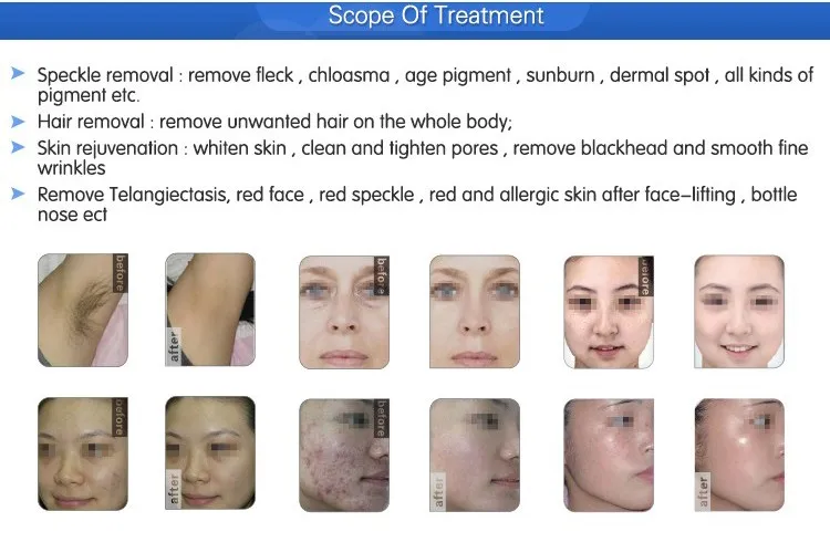 Ipl (интенсивного импульсного света)Принимает принцип, что вещество поглощает свет выборочно. Как различных целевых тканей впитывает импульсного света с различными спектра и свет действует на пигмент. Через фото термических и актиничность, машина может развеять пигмента, бетон кровеносных сосудов, сжечь волосяной фолликул и стимулируют коллаген регенерации, Затем он будет достижения цели чтобы развеять крапинками, лечения телангиэктазия, удаление волос и омоложения кожи. Потому что нормальной кожи впитывает мало энергии, так что лечение является безопасным!