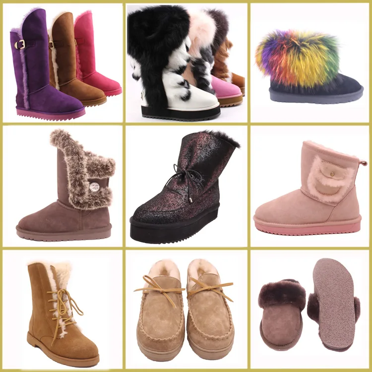 CF-196 Бесплатная образцы зима завод длиной до щиколотки из натуральной кожи и подкладка из овчины женская зимняя обувь
