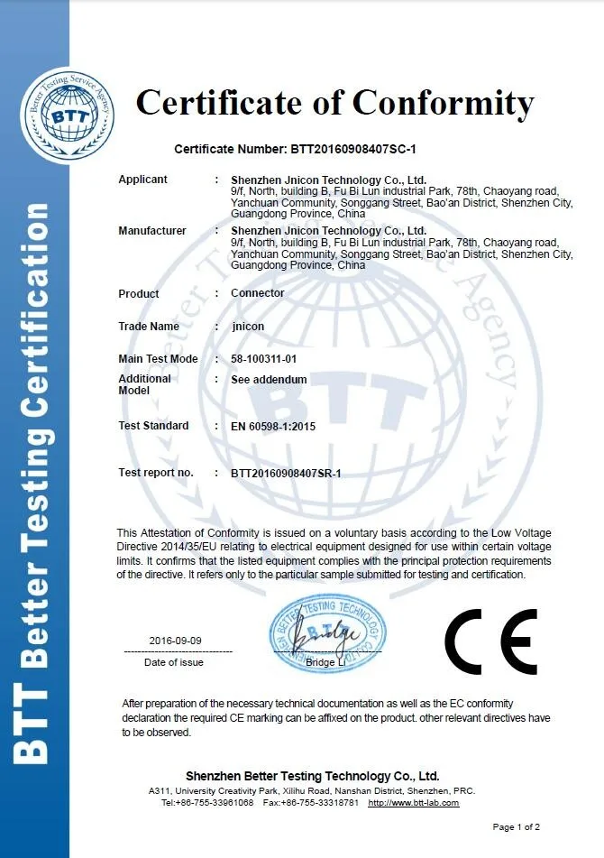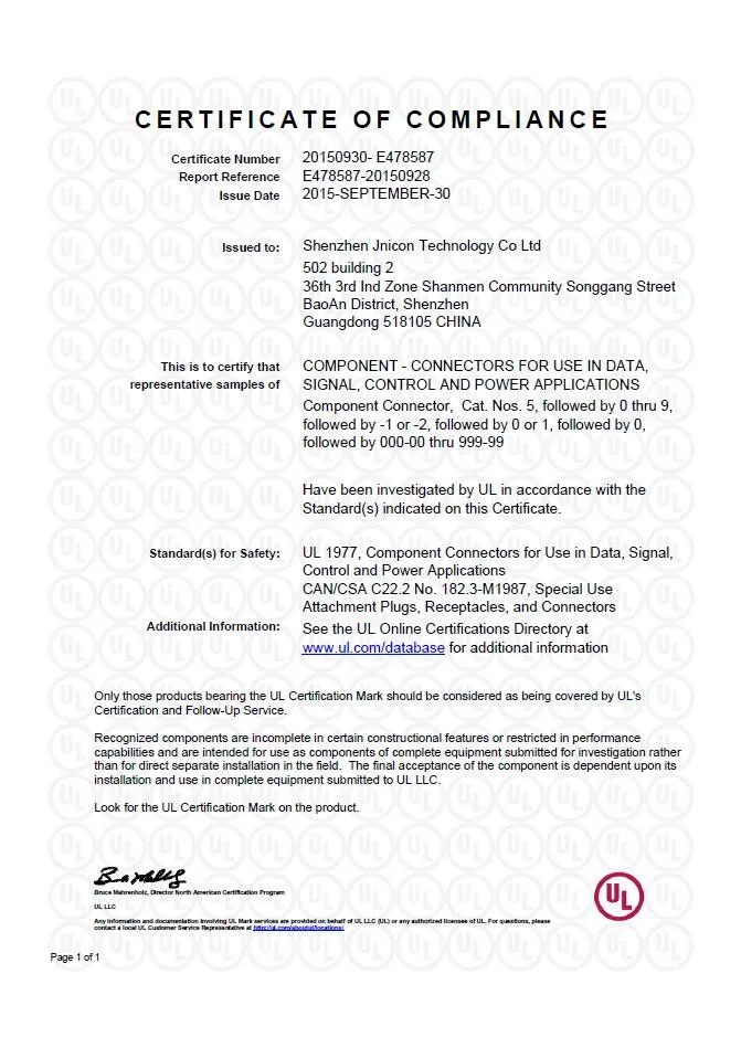 Шэньчжэнь jnicon технологии Лтд занимался в разработке и производстве водонепроницаемые разъемы в 2012 году и был зарегистрирован как общая налогоплательщика в феврале 2014 года. Наша компания специализируется на r & d, производства и продаж водонепроницаемые разъемы и промышленные разъемы. 14 серии и более 1,000 сортов продукция широко применяется в таких областях, как напольный (уличный фонарь, экран, освещение), коммуникации, автоматизации, New Energy, морской электроники, медицинское оборудование, система глобального позиционирования периферийных устройств, автомобильная электроника, и т. д.