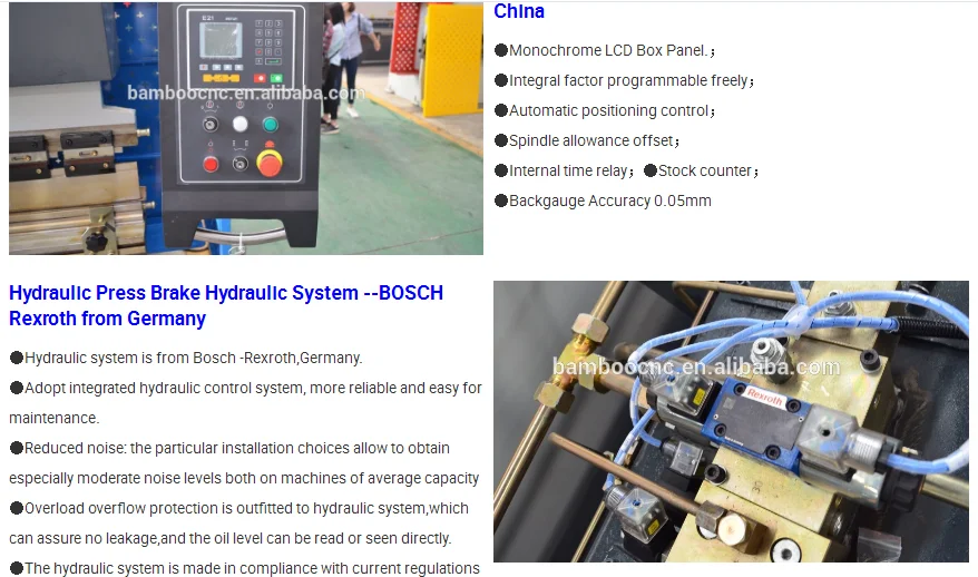 Бамбук является ведущим производителем и мировым поставщиком из листового металла машины специализируется на производстве пресс с ЧПУ тормоза, hydrualic режа, гидравлический пресс. Нажмите кнопку Питание, Утюг работника и лазерная резка macine. и т. д.
