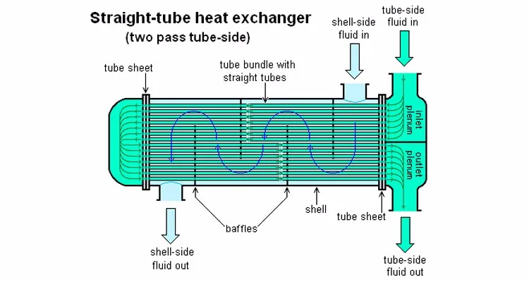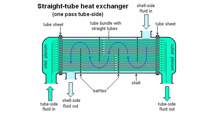 Теплообменник корпуса и трубки-класс теплообменника. Это наиболее распространенный тип теплообменника на нефтеперерабатывающих предприятиях и других крупных химических процессах, и подходит для приложений более высокого давления. Как указано в его названии, этот тип теплообменника состоит из скорлупы (большого давления). с пучком трубок внутри него. Одна жидкость проходит через трубы, и другой поток жидкости над трубками (через оболочку) для переноса тепла между двумя жидкостями. Комплект трубок называется трубкой-связкой, и может состоять из нескольких типов трубок: однотонные, с продольными краями и т. д.