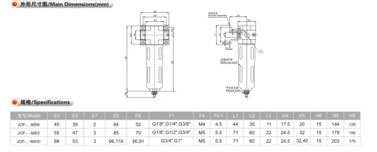 | JOF-1/8 "-5M-MINI | JOF-1/4 "-5M-MINI | JOF-3/8 "-5M-MINI | JOF-3/8 "-5M-MIDI | JOF-1/2 "-5M-MIDI | JOF-3/4 "-5M-MIDI | JOF-3/4 "-5M-MAXI | JOF-1 "-5M-MAXI | |