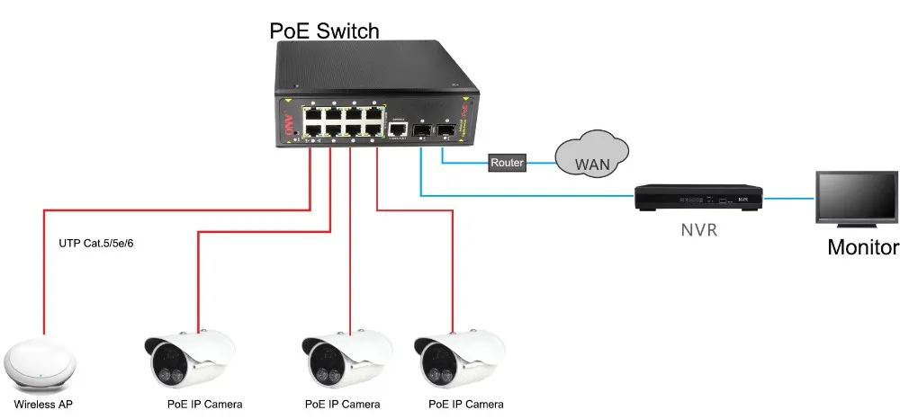 2 портами poe Поддержка как IEEE802.3af и IEEE802.3at стандарт