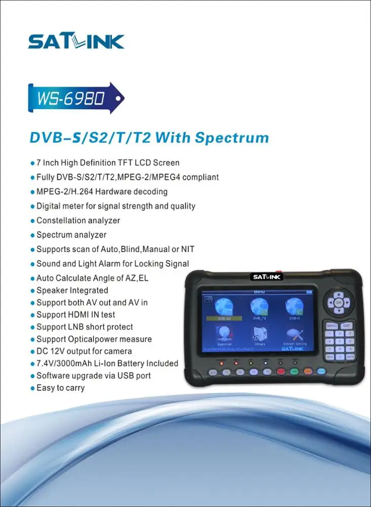 Satlink ws-6980 полностью dvb-s/s2 dvb-t/T2 dvb-c с Mer анализатор спектра HDTV цифровой спутниковый ПОИСК