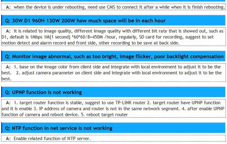 · | Поддержка NTP (Интернет синхронизации), DHCP (автоматически получить IP), Email (почта сервиса), UPNP (Универсальная вилка и игра). |