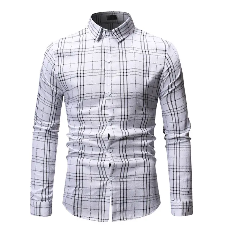2019 весна и осень рубашка деловая мужская клетчатая без кармана одежда приталенная Мужская рубашка с длинным рукавом Повседневная социальная