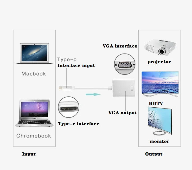 · USB 3,1 к адаптеру дисплея VGA, разрешение поддерживается 1920x1080, 1600x1200 и т. д.
