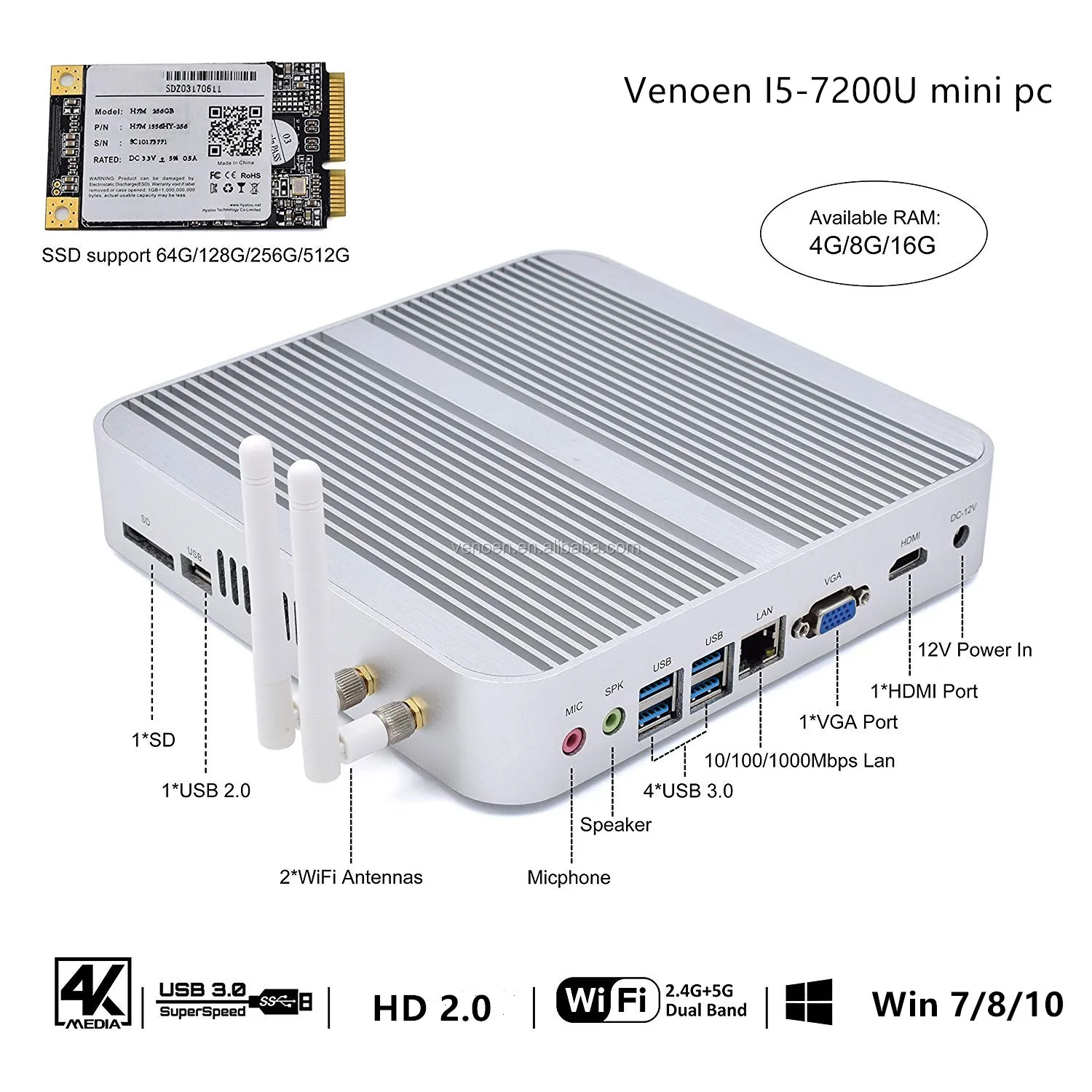 Коробка для хранения | 256G SSD; SATA: поддержка 1*2,5 дюйма SATA ноутбука HDD или SDD; MSATA: поддержка 1 * mSATA SSD; | ||||