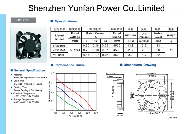 A3: 1 Размер образцов вентилятора: 5015 (50*50*15 мм)