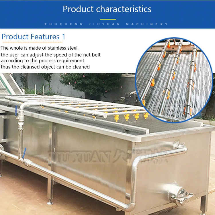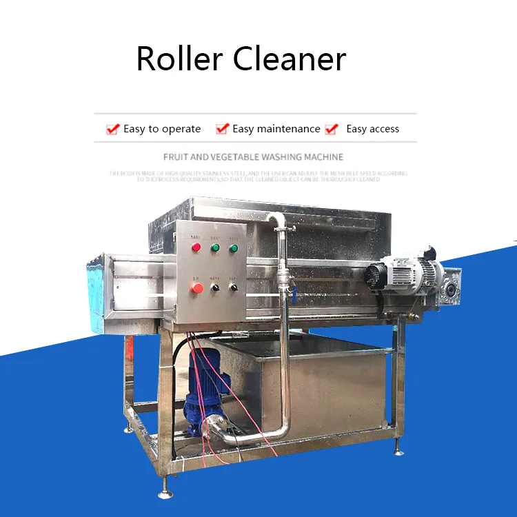 The hair roller cleaning machine is mainly composed of a motor, a transmission, and 9 hair rollers. Our factory has developed from the characteristics of root potato processing machinery at home and abroad. Using the principle of hair rollers, it is widely used in the cleaning and peeling of round and oval fruits and vegetables such as ginger, potatoes, carrots, potatoes, potatoes, kiwi and other root vegetables. The cleaning machine has the characteristics of beautiful appearance, large cleaning volume, high efficiency, low energy consumption, continuous cleaning, simple operation, long service life, etc. The hair roller is durable and has good wear resistance.